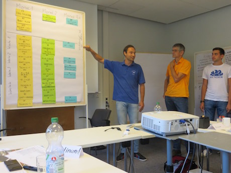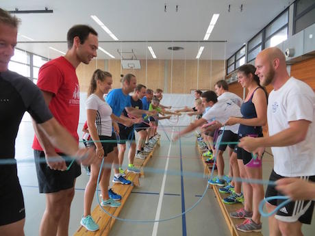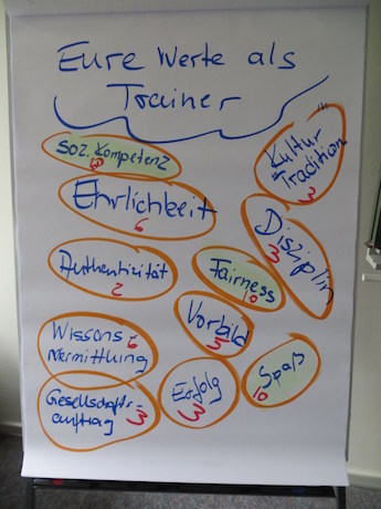 Daneben gab es aber auch viele Übungen zur Teambildung und der gezielten Förderung von bewusster Interaktionen und Kommunikation in der Gruppe. Die Teilnehmer durften sich auch viel selbst einbringen mit Ihren Ideen und organisierten immer wieder kleine "Kicks", zur Auflockerung der Theorie-Phasen, oder ließen die letzten Tage in der "Morgenpost" Revue passieren. Auch Feedbackrunden wurden eigenständig angeleitet und gaben dementsprechend den Referenten und dem Lehrgangsleiter Andreas ehrliche und direkte Rückmeldung.