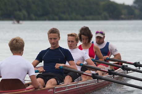 Beste Bedingungen für die Mannschaften und das Begleitpersonal gab es auch bei den drei Rennen von TNT-Zweier, KIK-Vierer und Los-Vierer. Im TNT-Zweier konnten dabei seltenste Kombinationen gesichtet werden. Ob es nun Mutter und Sohn oder Trainer und Schüler waren, allen hatten ihren Spaß. Selbst unser Vorstandsvorsitzender konnte aktiv dabei gesichtet werden. Es wird sogar behauptet, dass er mit seinem Bootskollegen heimlich Übungsstunden genommen haben soll. Eine gute Figur haben beide jedenfalls gemacht.