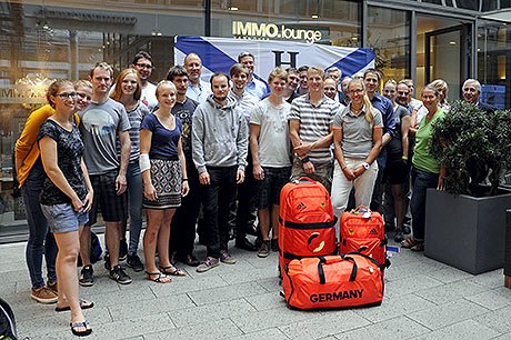 Eine große Runde aus Famlilie und Ruder-Freunden hatte sich eingefunden, um Marie viel Erfolg und die besten Wünsche mit auf den Weg zu geben. Timm Eichenberg versprach Marie im Namen aller Clubmitglieder die volle Unterstützung von zuhause.