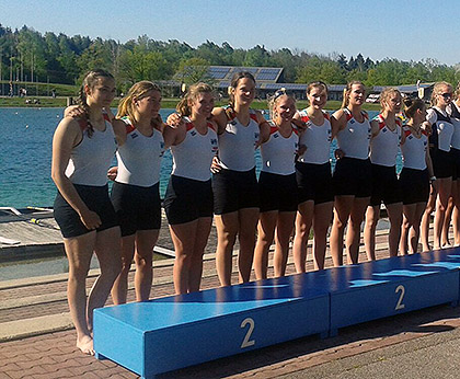 Am Sonntag wurde dann im Rahmen der 31. Internationalen Münchener Olympiapark-Regatta mit einer niedersächsischen Lösung eine neue Viererkonstellation erstmalig ausprobiert. Dazu sind Lena und Johanna gemeinsam mit Hannah Kleine-Pollmann und Svenja Bredenförder (beide vom Osnabrücker RV) gemeinsam ins Boot gestiegen. Im Rennen konnten sich die vier einen 3. Platz errudern.