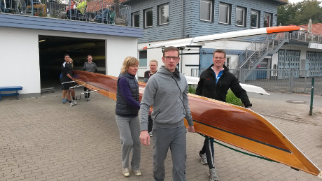 Wenn er auch nur zu dritt gerudert wird - das Tragen von "Magdeburg" erfordert dann doch ein paar mehr Hände