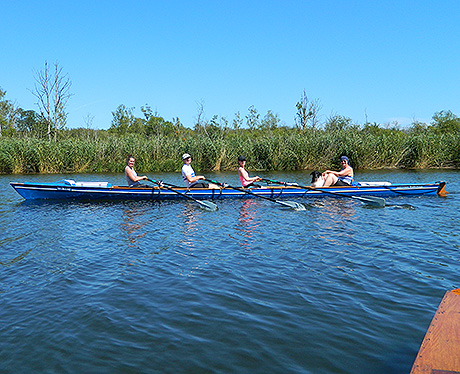Martin Lippmann trainierten Frauen-Vierer-Ohne zusammen mit Priess/Schomburg (Rostock/Hanau) fahren.