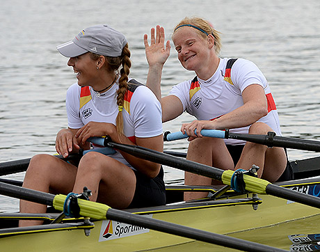 Nun ja, rein formal ist lediglich Marie-Cathérine Arnold Europameisterin - und zwar mit dem deutschen Frauen-Doppelvierer. Zusammen mit Thiele/Schmidla/Bär legte sich das deutsche Boot ab der Streckenhälfte vor den Rest des Feldes und brachte den Vorsprung souverän durchs Ziel.