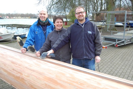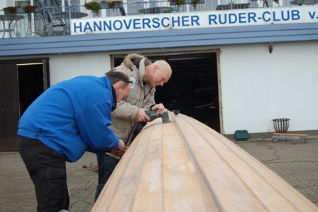 Daher treffen wir uns am Samstag, den 8. Februar ein weiteres Mal, um an unserem Klinkerachter Hannover die Schleifarbeiten zu beenden.