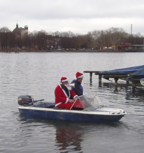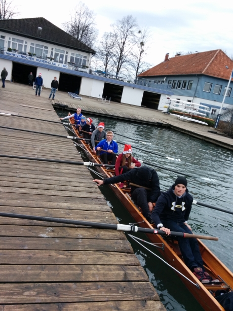 Beim ersten jährlichen Weihnachtsrudern wurden unsere Gigboote ausnahmsweise durch unsere Rennsportler bewegt. In bunt gemischten Mannschaften wurde der ruderische Jahresausklang gefeiert. Der Weihnachsmann wollte sich dieses Spektakel nicht entgehen lassen und belohnte die fleißigen Sportler. Die nachgesagte verblüffende Ähnlichkeit mit unserem Hauswart sollte allen unseren Mitgliedern Motivation sein ordentlich mit unserem Haus, Anleger etc. umzugehen, denn auf Geschenke will nächstes Jahr ja niemand verzichten.