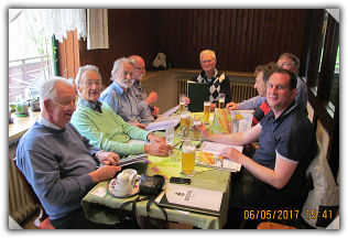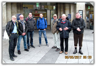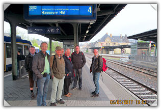 Adolf Bolte, Karl-Michael Baumgarten, Sebastiano Bellofiore, Detlef Gresch, Dirk Jordan, Reinhard Knieriemen, Hansjürgen und Oliver Scheele trafen sich am 6. Mai 2017 "Unterm Schwanz". Um 7.48 Uhr startete der ERIXX in Richtung Bad Harzburg. In Sarstedt stieß Rainer Ganschow zur Gruppe und Kalle servierte den Begrüßungssekt.