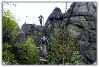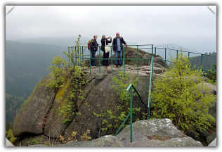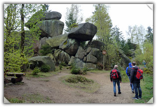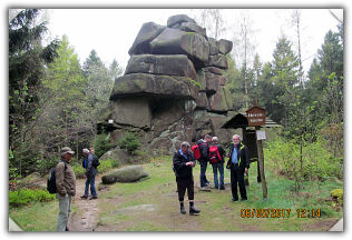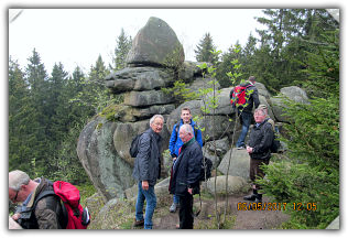 Die Wanderer trafen genau zur geschätzten Ankunftszeit um 12 Uhr dort ein, und gemeinsam pausierte man im Kästehaus. Nach einer Stunde gingen alle zu den nahegelegenen, sehenswerten Zielen Kästeklippe, Hexenküche und Mönch. Für die Wanderer ging es dann sehr steil bergab zum Romkerhaller Wasserfall und durch das Okertal zurück. Die Busfahrer hatten noch bis zur Rückfahrt um 14.15 Uhr viel Zeit, die sie im Gasthaus verbrachten.