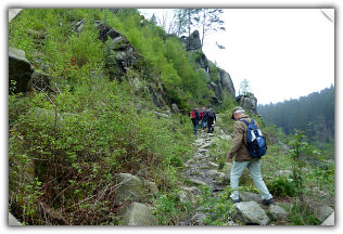 Die Wanderer stiegen in Goslar aus und fuhren mit dem Bus 801 nach Oker zur Haltestelle Kirchenbrücke. Dort begann um 9.35 Uhr ihre Wanderung, 5,5 km, davon die letzten 4 km steil bergauf, zur Kästeklippe in 605 m Höhe.