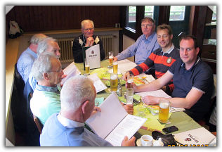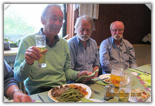 Um 15.30 Uhr trafen Reinhard und Hansjürgen in der Sportklause in Oker ein, eine Stunde später die durstigen und erschöpften Wanderer. Bier hatte man deshalb bereits telefonisch geordert. Das Veltins war ausgezeichnet und auch das Essen wurde von allen gelobt. Wieder blieb man eine Stunde länger als geplant sitzen, erst um 19.20 Uhr machte man sich mit dem Bus auf den Weg nach Goslar und traf um 21.10 Uhr mit dem Zug wieder in Hannover ein.