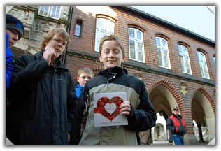Am Freitag, den 02.02., wurde der schon bei der Führung am Vortag entdeckte Marzipanladen genauer unter die Lupe genommen, wobei wir auch das dazugehörige Marzipanmuseum besichtigten (unter Anderem lebensgroße Statuen aus Marzipan) und beim Kneten eines Marzipanfrosches zuschauten, den Jasper anschließend – in der Hoffnung auf eine Traumprinzessin – küssen wollte. Danach gab es (in mindestens Dreiergrüppchen) die Gelegenheit die Geschäfte der Stadt zu Erkunden oder einfach auf dem Marktplatz Rugby zu spielen. Den Nachmittag verbrachten wir alle in der Ostsee-Therme, in der viele sofort eine Rutsche mit Geschwindigkeitsstufe 5 entdeckt hatten oder andere einfach nur in einem Whirlpool entspannten. Nach dem Abendessen liefen die meisten angesichts einer Rallye einmal durch die ganze Stadt um den Überraschungspreis abzusahnen – erheblich erleichtert für diejenigen, die bei der Stadtführung gut aufgepasst hatten (die dafür benötigte Zeit ging von Gruppe zu Gruppe weit auseinander).