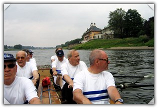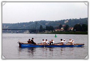 Bericht: Hansjürgen ScheeleZu jeder Ruderwanderfahrt gehört auch ein Kulturprogramm, bei dem die Sehenswürdigkeiten der Gegend angesehen werden. Die Elbe ist im Bereich Dresden so voll von unbedingt anzusehenden Objekten, dass schon im Vorfeld gefragt wurde: "Wann rudern wir denn mal?" Tatsächlich wurden in der Zeit vom 3. bis 9. Juni 2007 an vier Rudertagen 71,6 km zurückgelegt.