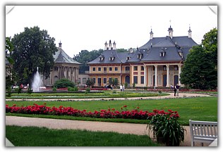 Dienstag - Pirnaer RV (km 34,4), Schloss Pillnitz, Dresdner RV (km 49,0). Wieder mit dem RE in Pirna angekommen, besichtigten einige erst den Ort, dann ging die Fahrt los. Nahe der Fähre hinter dem Schloss Pillnitz wurde wieder ein geeigneter Ponton entdeckt. Mangels anderer Möglichkeiten musste der Vierer an der Barke anlegen und dessen Besatzung über die Barke auf den Ponton klettern. Schloss und Garten sind eine Pause wert. Nach weiteren 5,5 km war man am Etappenziel, dem Dresdner RV in Sichtweite des Blauen Wunders. Am Abend folgte ein Besuch des Kabaretts Herkuleskeule in Dresden. Erstmals fiel die Bemerkung, Außenstehende würden nicht glauben, dass wir Ruderer sind, sondern uns für eine Gruppe der Eisen- und Straßenbahnfreunde halten. Das Kabarett war bei Einheimischen sehr beliebt und ausverkauft.