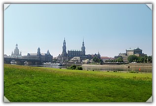 Mittwoch - Dresdner RV (km 49,0), Radebeuler RV Planeta (km 68,2), Frauenkirche. Am nächsten Tag passierte man bald die herrliche Altstadt von Dresden mit ihrer prächtigen Kulisse, deretwegen man sich einige hundert Meter treiben ließ. Hinter Dresden ließ der Ausflugsverkehr nach und die von zuvor zahlreichen Schiffen ausgehenden lästigen Wellen wurden seltener. Der Radebeuler RV liegt nur wenige Meter neben unserem Hotel und nach kurzer Erfrischungspause ging es mit der Straßenbahn zur Besichtigung der Frauenkirche. Wir hörten einen Filmvortrag über deren Wiederaufbau, sahen die beeindruckende Kirche und nahmen noch an einer Abendandacht mit Orgelmusik teil. Einige blieben danach in der Dresdner Altstadt, andere entschieden sich für das ruhigere Kötzschenbroda als abendliches Endziel.