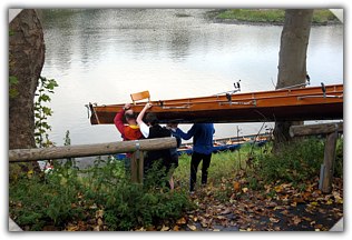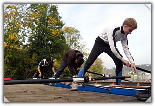 Bericht in Auszügen: Juliane von WrangelAm Freitag Nachmittag, den 10.10.2008, machten sich acht motivierte Ruderer aus der Jugendabteilung und sieben Betreuer mit drei wanderfahrtstauglichen Booten im Schlepptau auf den Weg nach Hattingen an der Ruhr. Die Tour de Ruhr Vol. III hatte begonnen. Nach einer längeren Autofahrt auf der wunderschönen, mit Baustellen übersäten A2 kamen wir am RV Hattingen an, verspeisten unser kulinarisches Buffet (Wachteleier, Maispfannkuchen und weitere Leckereien), bauten dann schnell unser LuMa-Lager auf und gingen schlafen.