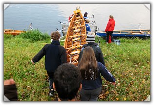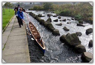 Am Sonntag ruderten wir bis zum Steeler RV. Dabei passierten wir einige Stromschnellen, in welchen man sich als Steuermann nicht unbedingt auf die Karte konzentrieren sollte. Endlich konnten wir auch eine Bootsrutsche benutzen, nachdem wir vorher oft treideln oder umtragen mussten. Wäre mehr Zeit gewesen, hätten wir die Boote sicherlich noch einmal hoch getragen, da das Rutschen einen Heidenspaß macht.