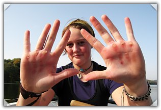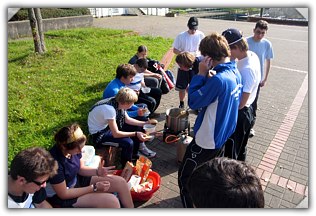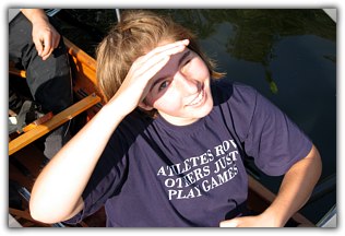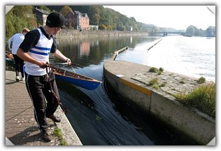 Am Samstag fuhren wir zum RC Witten, um dort die Boote aufzuriggern und loszurudern. Das Wetter war meistens so gut, dass Wasserschlachten und Steuerklauen nicht ausblieben. Nach 12 km und einer Mittagspause - inklusive Eis und Burgbesichtigung in Blankenstein - legten wir in Hattingen an. Dort mussten wir die Boote mit einer Seilwinde zum Club hochziehen. Jasper und Flo entdeckten jedoch eine viel sinnvollere Funktion: Ein Aufzug für faule Ruderer. Abends schauten wir den Film Keinohrhasen, bevor wir uns müde in die Schlafsäcke zurückzogen.