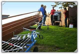 Mit dem Bootswagen hinauf zum RV Hattingen