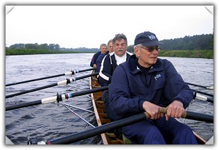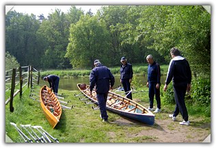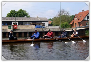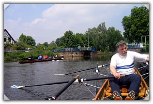 Fotos und Bericht in Auszügen: Hansjürgen ScheeleRolf Walter hatte seine Altherrenkollegen bereits zum vierten Mal eingeladen, in seiner Jagdvilla in Meißendorf von ihm bewirtet zu werden. Wie im Jahr 2007 sollte dies mit einem Ruderausflug auf der Aller verbunden werden. Die Boote Fred Schnicke und Magdeburg wurden nach Boye, einem Ort an der Aller nahe bei Celle, transportiert, wo es einen kleinen Steg gibt. Die Aller hatte einen hohen Wasserstand. Folglich mussten wir zwar mit nassen Füßen in die Boote, aber das war weniger lästig als die Steine am Ufer, die vor 3 Jahren das Boot gefährdeten. Kurz nach 11 Uhr konnte abgelegt werden, eine Stunde später war die Schleuse in Oldau erreicht. Rainer Denecke bewies, dass die Selbstbedienungsschleuse auch von einem Oberstudiendirektor bedient werden kann.