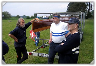 Als die Stimmung dank des Testes verschiedener Schnapssorten gerade ihrem Höhepunkt entgegen ging, erinnerte Rolf Walter daran, dass wir um 21 Uhr die Boote wieder im Club entladen wollten. Es folgte ein unnötig hastiger Aufbruch, die Rückfahrt und das Entladen des Hängers, vor dem sich der Verfasser, weil ohne eigenes Kraftfahrzeug unterwegs, allerdings erfolgreich drückte.