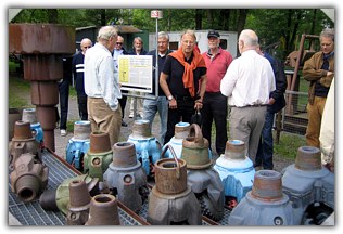 In großer Eile wurden die Fahrzeuge aus Boye geholt und fast pünktlich waren wir um 14 Uhr im Erdölmuseum in Wietze. Dort stießen Rolf Walter, sein "Küchengehilfe" Rainer Tollkühn, sowie Jürgen Gerking und Claus C. Nommensen zur Gruppe. Nach zwei Stunden Rudern waren die sehr ausführlichen Ausführungen des Museumsführers zur Entstehung von Erdöl, der Geschichte von Wietze usw. anhand von Schautafeln und Modellen etwas ermüdend, aber bei der Besichtigung des interessanten Freigeländes wurden dann alle wieder munter.