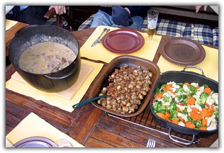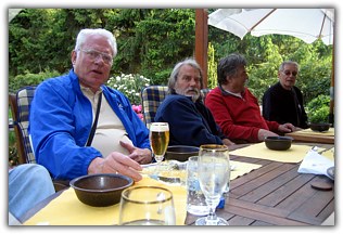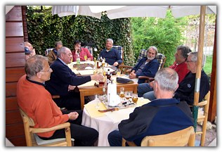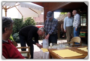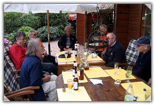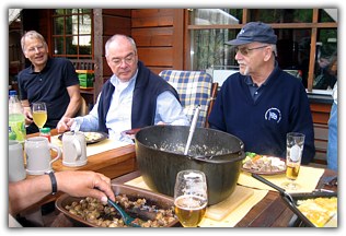 Doch bald drängte die Zeit zum Aufbruch. In Meißendorf wurden wir dann von Rolf Walter bestens bewirtet, es gab Wildschweingulasch mit Pilzen, verschiedene Gemüse und Kartoffelgratin. Niemand musste hungern oder dursten. Rolf hatte auf ein Gastgeschenk ausdrücklich verzichtet, stattdessen kreiste eine Mütze als Black Box-Ersatz, und wieder kam eine schöne Summe für den Club zusammen. Peter Brieger sprach den Dank der Teilnehmer aus und Rolf versprach, dass das nicht der letzte Besuch bei ihm gewesen sei.