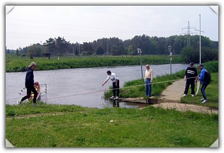 Da das doch allerlei Zeit benötigte, erhielt das Boot mit Adolf Bolte, Peter Weigelt, Jürgen Thoms, Karl-Michael Baumgarten und Steuermann Hans-Georg Herrmann einen nicht eingeplanten Vorsprung. Niemand in diesem Boot war genau eingewiesen worden. Als der zweite Vierer mit Peter Brieger, Rainer Denecke, Gerd Radtke und Hansjürgen Scheele um 13.15 Uhr am vereinbarten Endpunkt, dem Campingplatz in Winsen, ankamen, war der Steg noch blockiert. Die ortsunkundige führende Mannschaft war zu weit gefahren und musste zurück rudern.