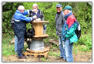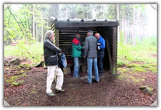 Der Wegweiser zeigte "Alte Taufe" und "Kreuzbuche" nach links, zur "Alten Taufe" wollte man wegen des Zeitverzugs nicht und ging nach rechts. Bald wunderte man sich, dass es auf diesem Weg überwiegend bergab ging, man hatte den Kammweg verlassen und die Orientierung vollkommen verloren. Funkempfang gab es auch nicht. Als endlich Häuser und Menschen in Sicht kamen, stellte man fest, dass man in Barsinghausen bei der Freilichtbühne gelandet war.