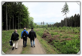 Von Egestorf sollte es zur Mooshütte und weiter nach Bantorf gehen. Das Navi zeigte 1 h 15 Minuten für die 4,9 km von Egestorf zum Nordmannsturm und 1 h 40 Minuten für die 8,6 km zur Mooshütte. Dort war man ab 14 Uhr angemeldet. Bis zum Bahnhof in Bantorf waren dann noch einmal 1,8 km in etwa 19 Minuten zu gehen. Bei leichtem Regen und nur 10 Grad Celsius trug man Regenjacken und wurde folglich beim Aufstieg zum Kamm zwar nicht von außen durch Regen, sondern von innen durch Schweiß nass.