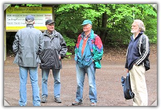Fotos und Bericht: Hansjürgen ScheeleAn der diesjährigen Turnhallensaisonabschlusswanderung der Montagsturner konnten nur sechs "Turner" teilnehmen. Verstärkung aus den Reihen der Alten Herren blieb in diesem Jahr aus. Folglich machten sich nach einer Fahrt mit der S-Bahn am 5. Mai 2012 um 10:15 Uhr nur Adolf Bolte, Karl-Michael Baumgarten, Rainer Ganschow, Dirk Jordan, Hansjürgen Scheele und Jürgen Thoms von Egestorf am Deister auf den Weg zum Nordmannsturm. Bereits in der S-Bahn hatte Kalle Baumgarten eine Runde Sekt zur Aufmunterung serviert.
