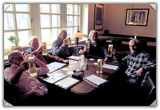 Da es bereits 14:30 Uhr war, wurde der Mooshütte abgesagt und ein Restaurant in Barsinghausen gesucht. In der Marktstraße fand man das Restaurant Suhle. In diesem ehemaligen Bauernhaus gab es ebenfalls Rupp-Bräu und eine gute Speisekarte. Mit dem Handy wurden die Zwischenstände der Fußballspiele des letzten Bundesliga-Spieltags verfolgt. Die Stimmung stieg und hätte jemand von außen zugehört, er hätte kaum geglaubt, dass nur sechs Personen so laut sein können. Frau Ganschow stellte fest, dass sie den Alkohol durch das Telefon riechen würde.