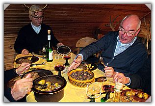 Wieder im Haus angekommen, servierte Rolf eine köstliche Lauchsuppe, Gulasch vom selbstgeschossenen Frischling und eine Nachspeise. Gezapftes Bier, Wein und andere Getränke waren reichlich vorhanden und es wurde ein außergewöhnlicher Nachmittag. Die Black Box kreiste und die Finanzierung eines weiteren Skulls für den bestellten Skull-Gigachter war gesichert.